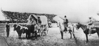 oxen, driven by the legendary pioneer Ezra Meeker,