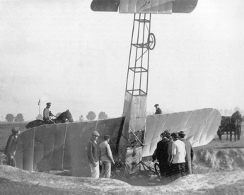 on its back, pinning the pilot below it. Parts of the crowd broke